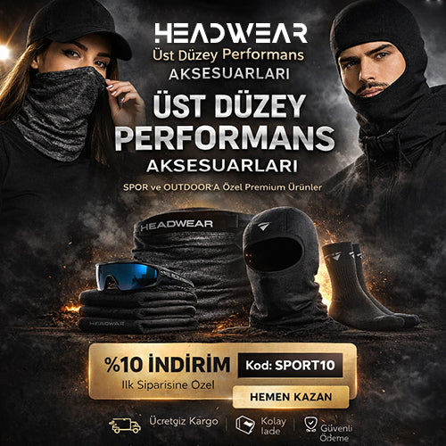Performans neck gaiter, çorap ve aktif yaşam ürünleri.