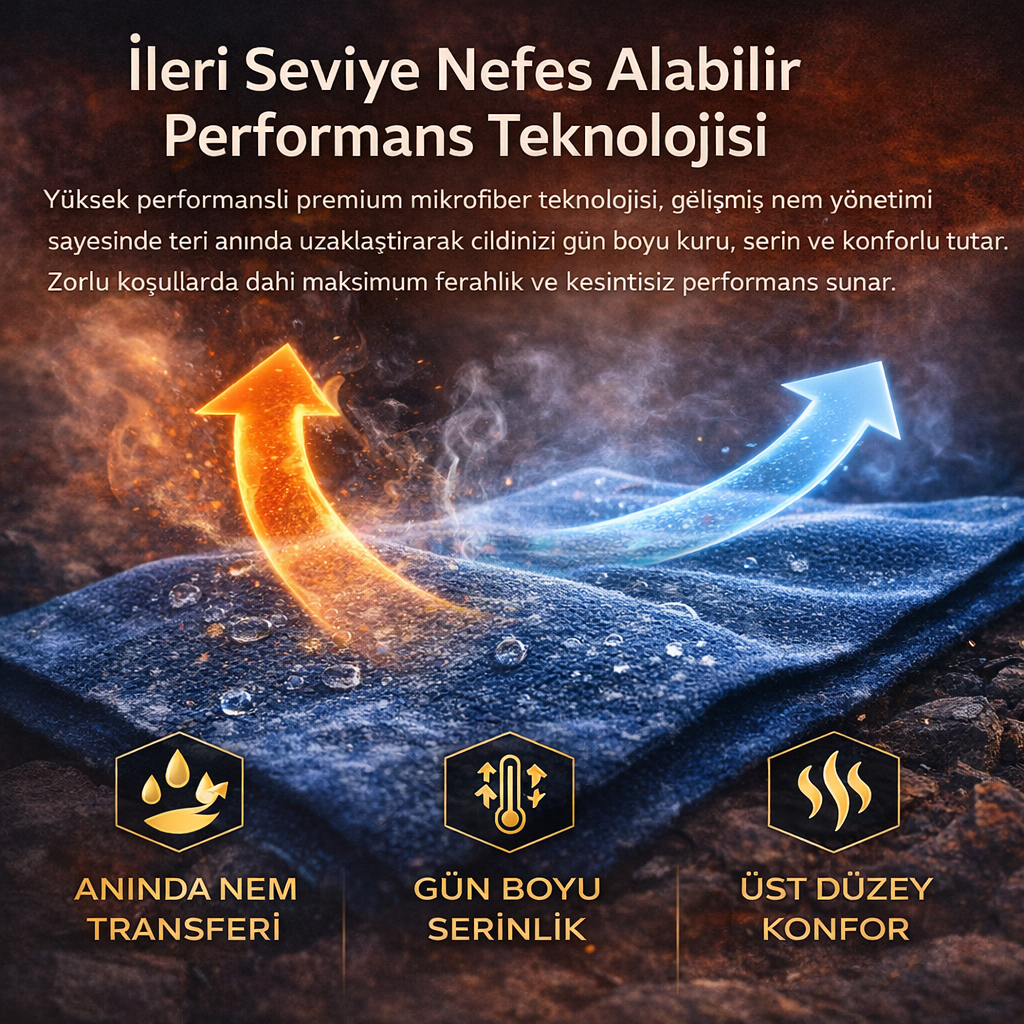 ✔ Hızlı kuruyan, terletmeyen performans kumaşı